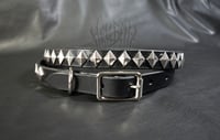 Add flare to your outfit with the Hellbent Diamond studded leather belt. Handmade from Italian vegetable tanned leather. Adorned with diamond pyramid studs.